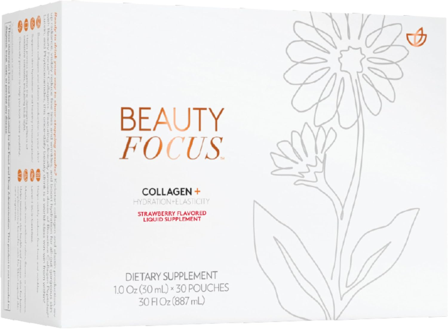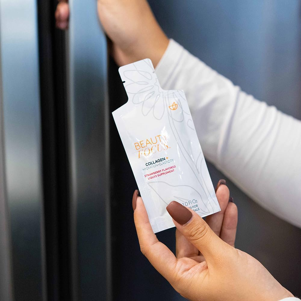Beauty Focus Collagen offers more than a skin-deep transformation. Through a meticulously crafted blend of Bioactive Collagen Peptides, Lutein, and Phytoceramides, this drinkable elixir supports radiant skin. The proprietary blend of Bioactive Collagen Peptides supports collagen and elastin production, going beyond typical collagen supplements. These peptides, recognized for their exceptional properties, help improve skin elasticity and reduce the appearance of fine lines. Lutein, sourced from marigold flowers, enhances skin radiance and helps protect against oxidative stress, safeguarding your skin’s vitality. Phytoceramides, extracted from wheat lipids, support the skin’s moisture barrier, ensuring sustained hydration for a healthy skin complexion. This exceptional liquid collagen blend isn’t just effective alone—it also works in harmony with other skincare routines, enhancing results. When used alongside topical skincare products, the benefits are extraordinary. Enjoy the inside-out beauty journey with Beauty Focus Collagen. It complements Nu Skin topical regimens, amplifying their efficacy. Certified at Level-I SCS, it is designed to boost your carotenoid levels while remaining free from artificial additives. Indulge in the naturally delicious strawberry flavor, and take your collagen packets on the go for a delightful beauty routine. Elevate your skincare routine with this powerhouse combination of elite Collagen Peptides, Lutein, and Phytoceramides, transforming the way you care for your skin from within.