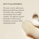 A “desert milk” complex soothes and moisturizes, and piperonyl glucose calms to help discourage pigmentation and dark spots.