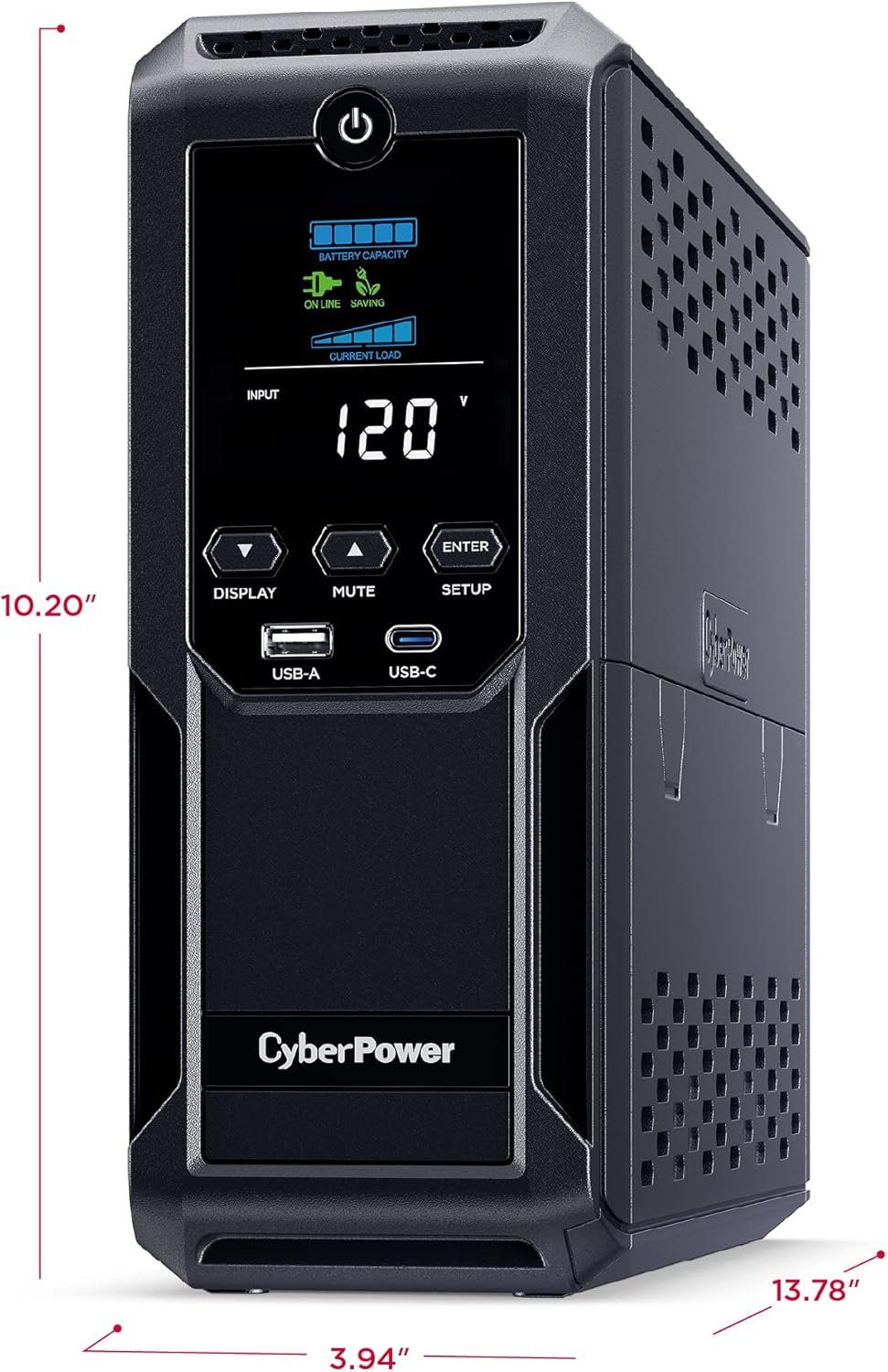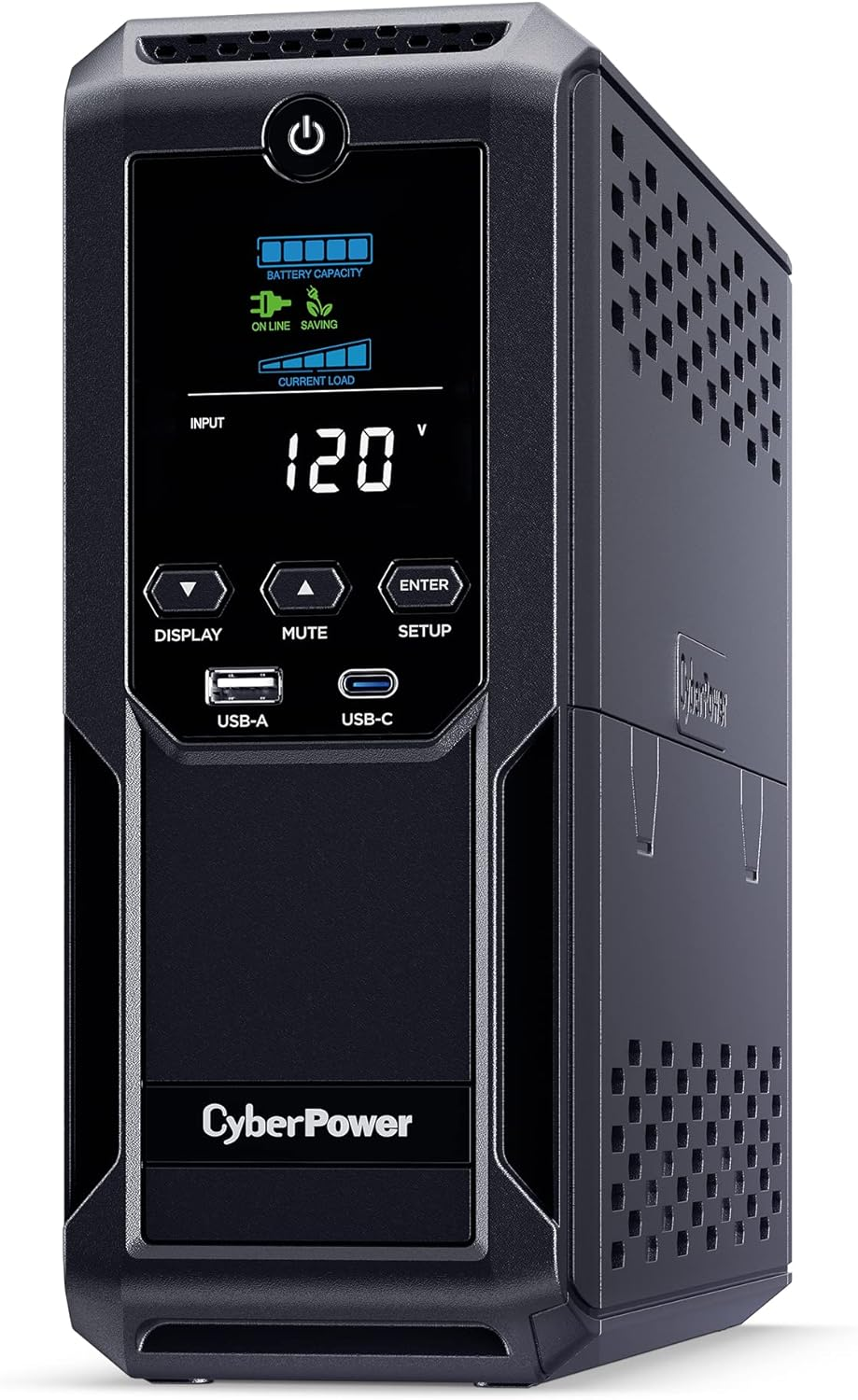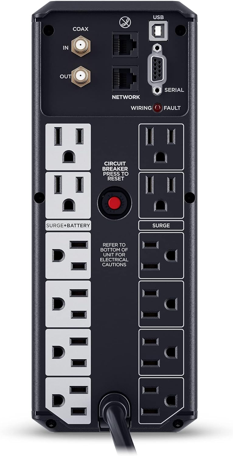 - 12 NEMA 5-15R OUTLETS: Six battery backup & surge protected outlets; six surge protected outlets; INPUT: NEMA 5-15P plug with 6-foot power cord; USB charge ports (1 Type-A, 1 Type-C) quickly charge mobile phones and tablets
