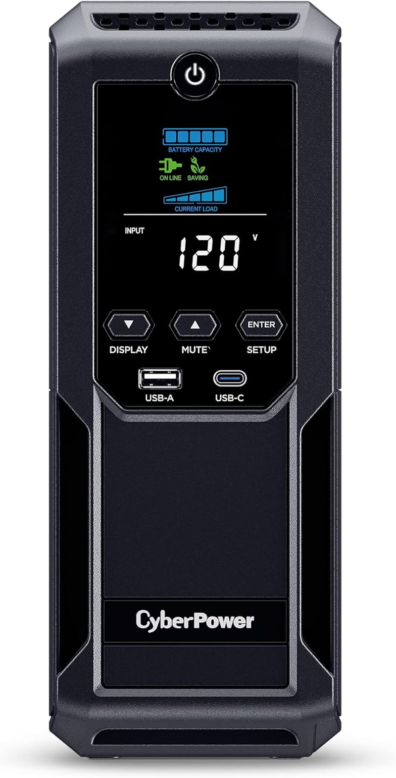 CP1500AVRLCD3 Intelligent LCD UPS System, 1500VA/900W, 12 Outlets, 2 USB Ports, AVR, Mini Tower, Black