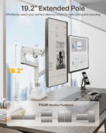 - 【Ergonomic Precision & Flexibility】Tilt (-75° to +75°), swivel (±90°), and 180° screen rotation allow effortless customization of your viewing angles, reducing neck. 19.2″ height pole adjustment and side-by-side or vertical stacking for dual-monitor setups. The monitor arm height range up to 29.4″, and extends up to 22.2″ to help you achieve the perfect viewing angle