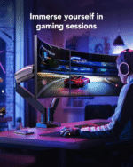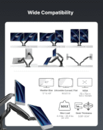 - Longer and Taller Arms – This dual monitor mount comes with enlarged arms that extend up to 25.59″ which is perfect for deeper, larger desktops. It can be easily raised up to 21.1″, providing you with more comfortable height adjustment.