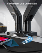 - Increased Stability & Convenience – The enlarged base and sturdy construction ensure huanuo dual monitor stand superb stable. Supports both clamp and bolt-through grommet mounting for desk thicknesses up to 3.54″. The hole for grommet mounting should be 0.39″ to 1.97″ in diameter; the built-in USB port provides an easy way to charge your USB devices.