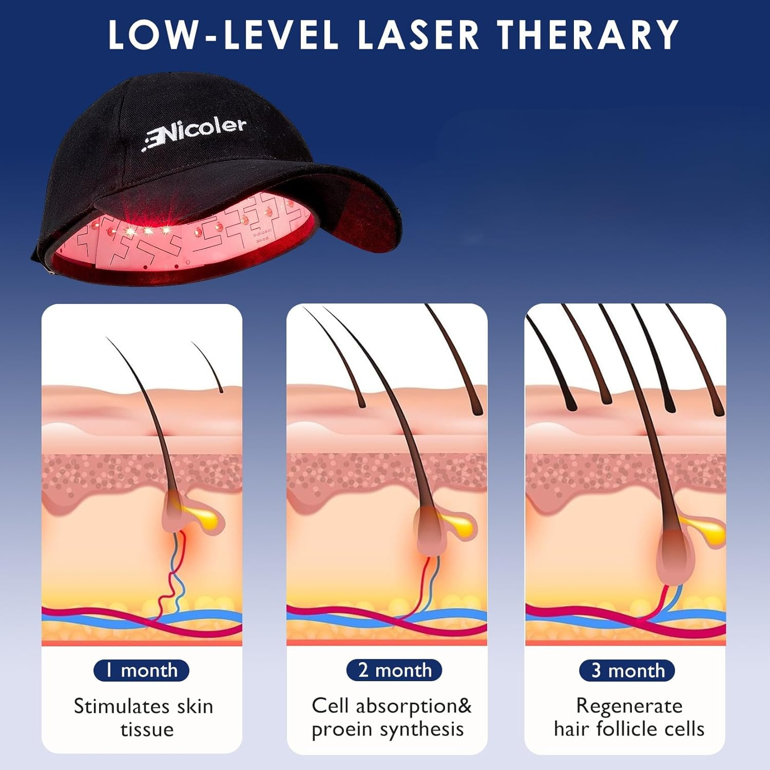 - EFFECTIVE HAIR REGROWTH SOLUTION: Struggling with hair loss? Nicoler therapy cap offers a safe solution to promote the growth of thicker, healthier hair. Suitable for both men and women, this cap helps restore your confidence with natural hair regrowth in as little as 4-6 months.