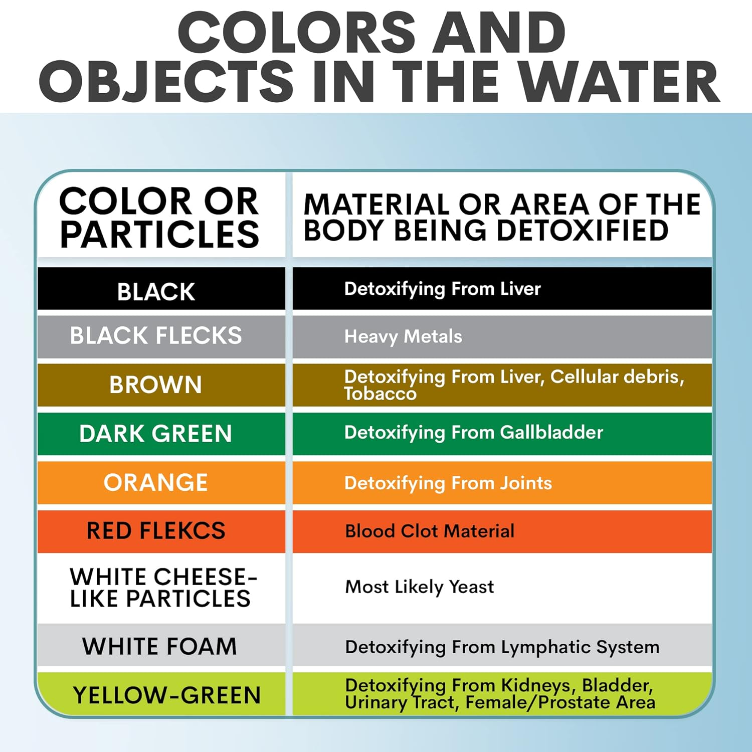 - WHAT’S IN THE BOX – This ionic detox foot bath machine comes with everything you need to enjoy a relaxing and cleansing foot bath at home. You will get a controller unit, a 1/4 lb. bag of Detox Sea Salt, two reusable arrays, a white 12QT basin, an instruction manual, an ionic detox foot bath brochure, and a 16-page informational booklet.