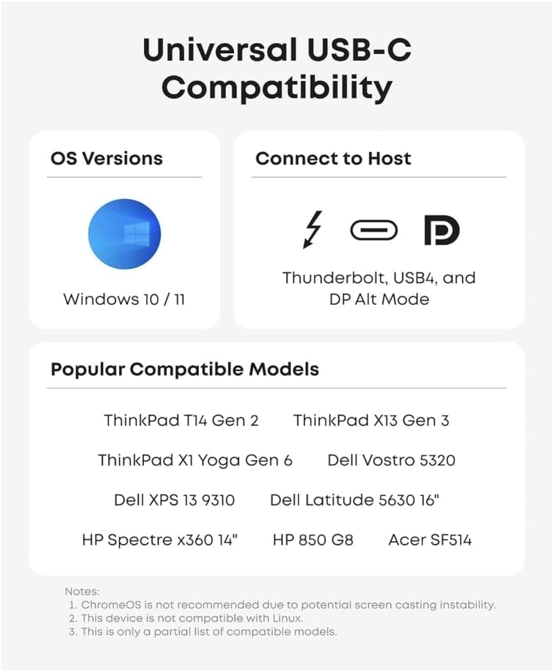 Q1: Will this dock work with any laptop? How do I make sure my laptop works with this dock?