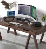 - Rugged and durable: when you need two computers to work together, this is a good choice! Product size: 38.88 x 7.87 x 3.54 inches (length * width * height); load-bearing capacity: 66 pounds. The dual monitor stand is made of high-quality galvanized steel, which can accommodate two 27″ monitor stands and other equipment, such as printers, computers and laptops.