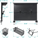 Pegboard with Dual Monitor Stand,Steel Pegboard for Desk,Computer Accessories for Office, Privacy Panel for Gaming Desk, 4 Accessories Modular Hanging,43 X 34Inch, Black