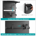 - Pegboard With Dual Monitor Stand – Lets you work in a more comfortable ergonomic position,The monitor stand allows your monitor to 360°swivel, tilt and rotate. Go and freely set your monitors to customized angle and height.Our innovative Dual Monitor Mount is VESA compatible SIZE 100×100,75×75 mm or 50x50mm, each monitor arm holds a max screen size of 32″.