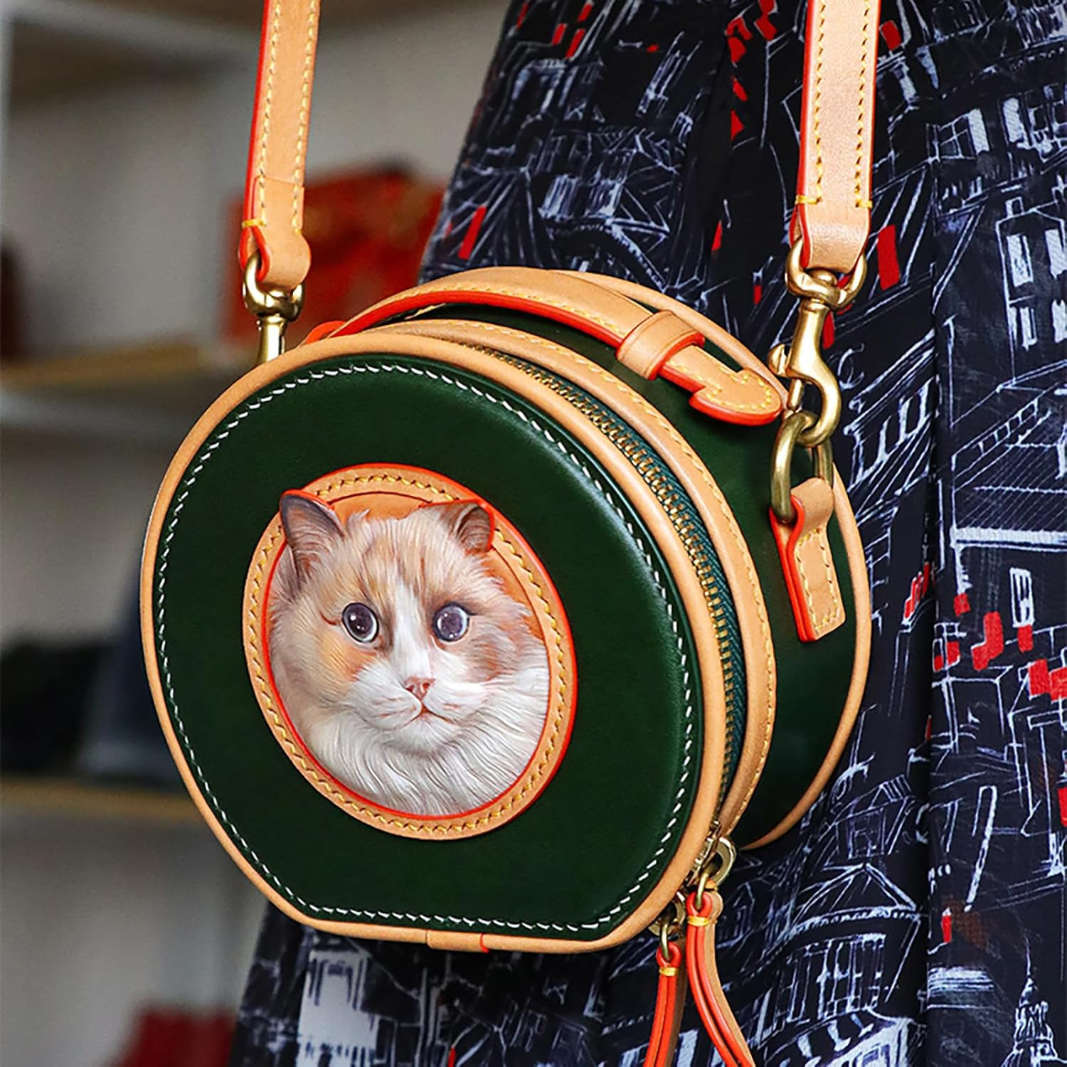 Personalized Leather Bags for Women Trendy Mini round Bag Customizable Pet Memorial Gifts for Mother Girlfriend