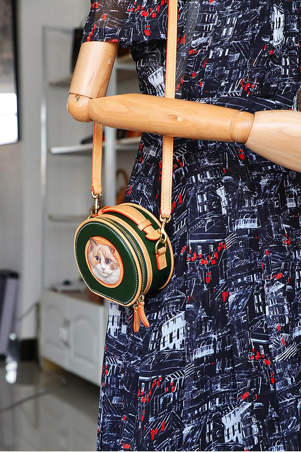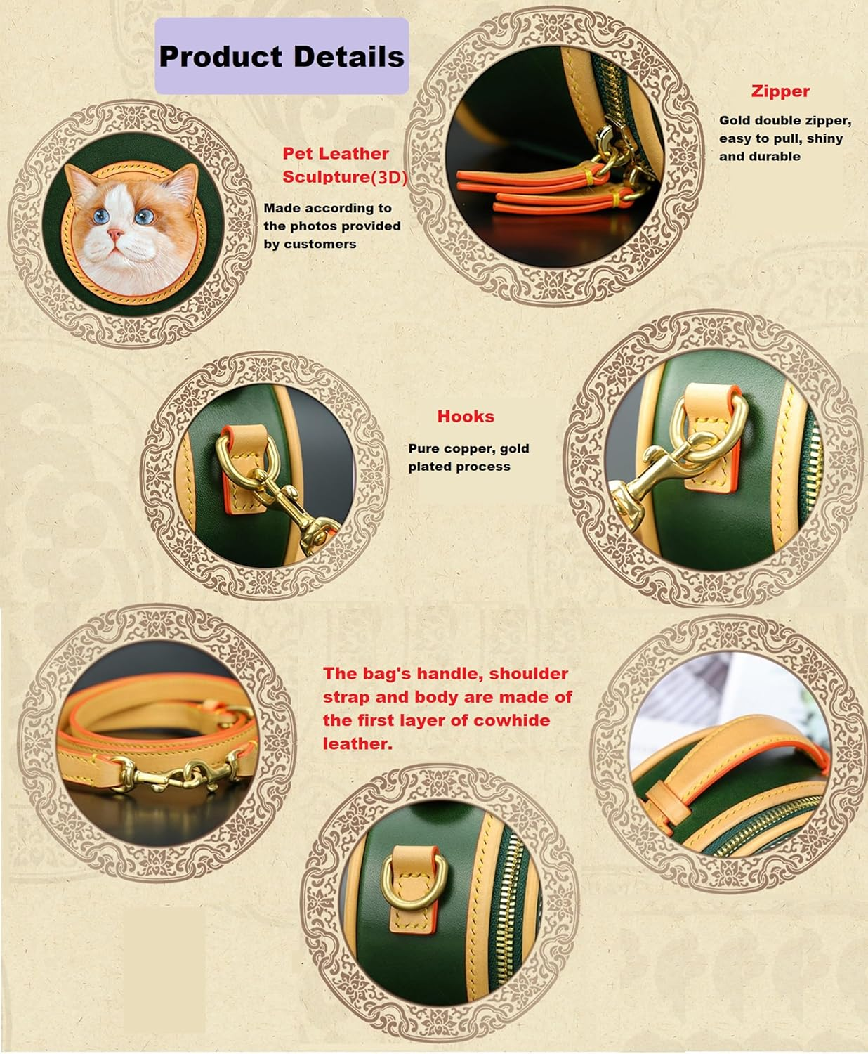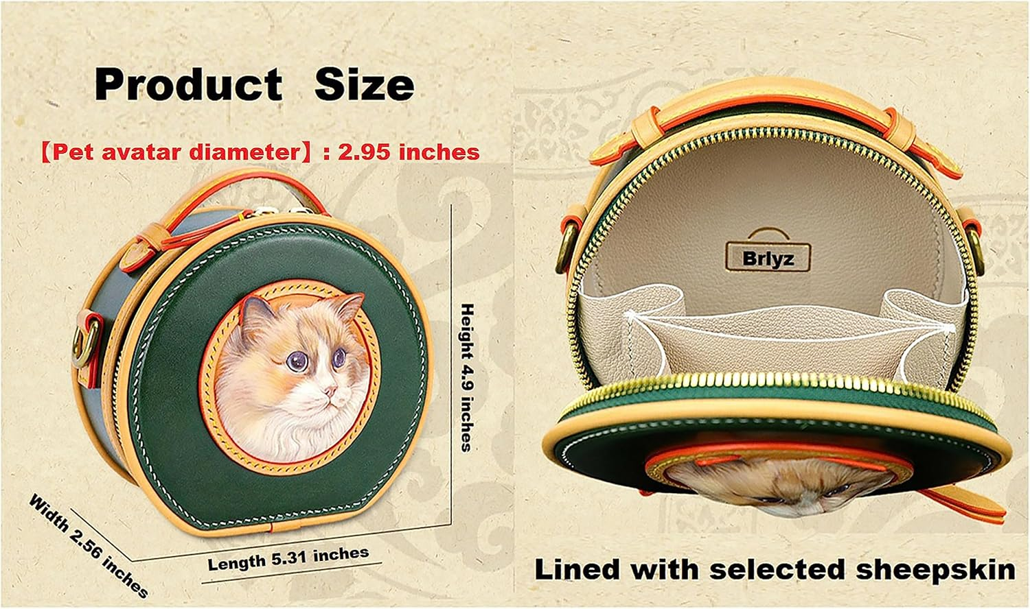 Brlyz Personalized Genuine Leather Bags for Women – Trendy Mini round bag Customizable and Unique Pet Memorial Gifts for Mother Girlfriend Sister