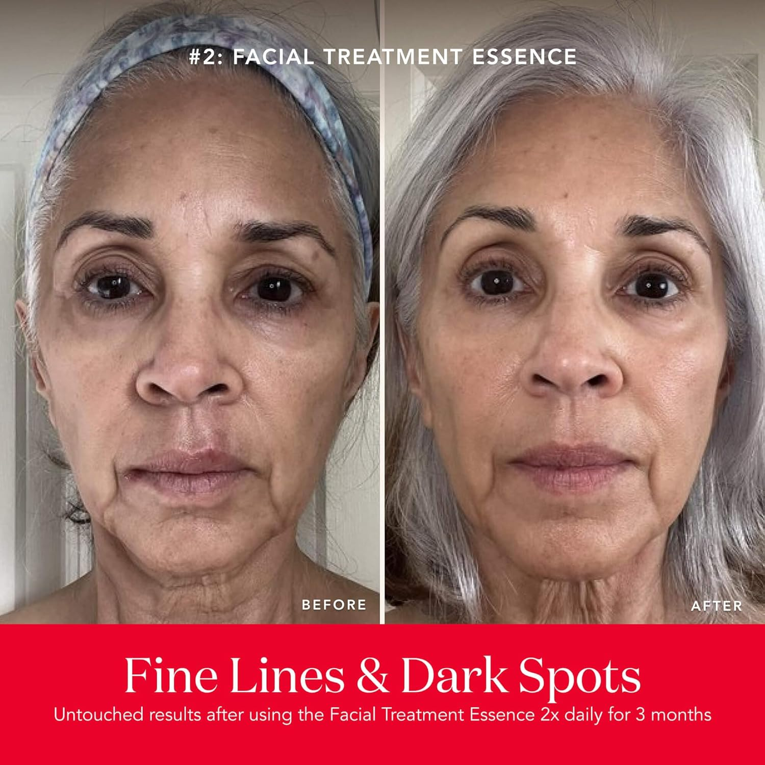 - Facial Treatment Essence & Ultraura Essence Serum – Our treatment essence is an anti aging must have, working to visible reduce stubborn skin damage and signs of aging. The essence serum helps to boost your skins radiance with a complex of Niacinamide, PITERA & Snow Lotus Extract.