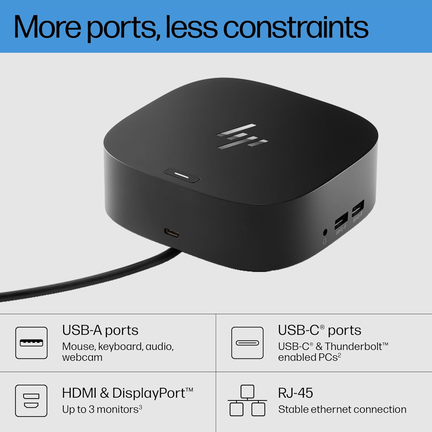 - COMPATIBILITY WITHOUT CONSTRAINTS – Designed with universal compatibility in mind, this dock works with both HP and non-HP USB-C- and Thunderbolt-enabled laptops (1).